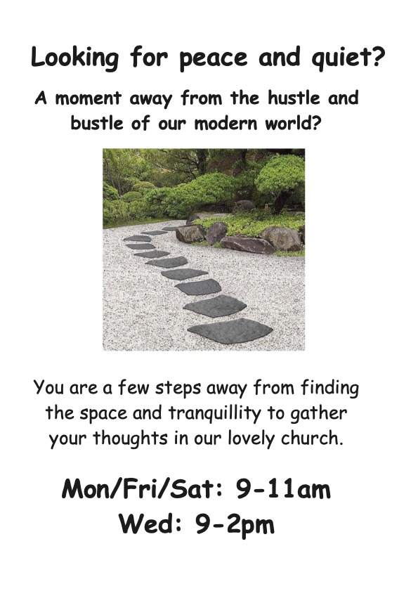If you simply wish to 'come and be', there are opportunities to come and do just that during the week as well as or instead of attending Sunday services. We are here for everyone.